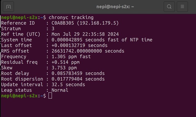 You can find additional information about your NEPI Device's NTP connections by opening an SSH connected terminal to your NEPI device and typing: