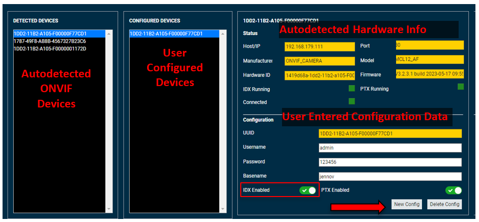 Before NEPI can connect and configure the IDX interface for ONVIF cameras, you must first add the camera's ONVIF access credentials (username & password) to the NEPI device's ONVIF credentials database.