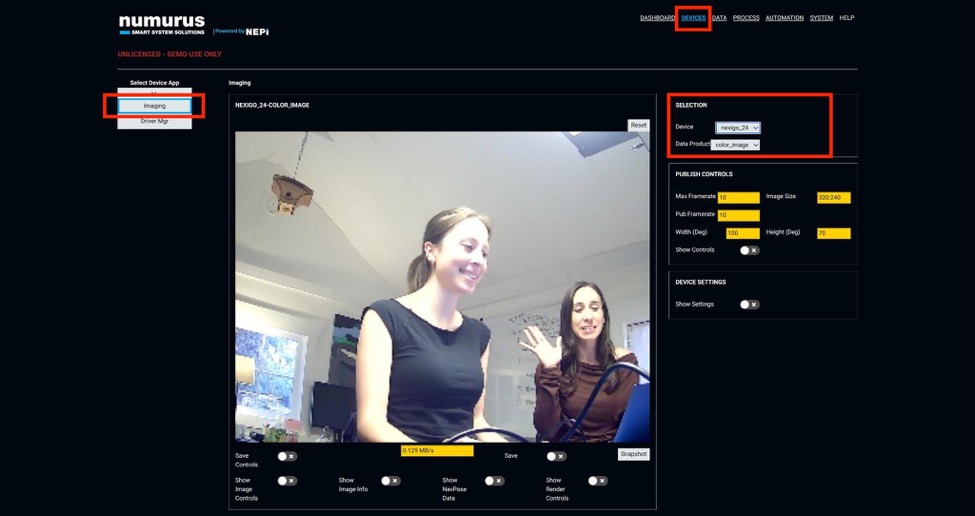 4) To access the camera controls navigate to DEVICES in the top menu then: